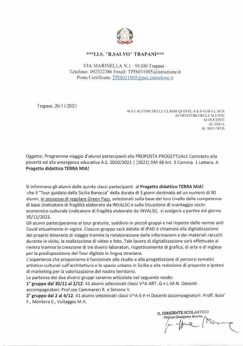 PROGETTO DIDATTICO ” TERRA MIA!” PROGRAMMA DI VIAGGIO